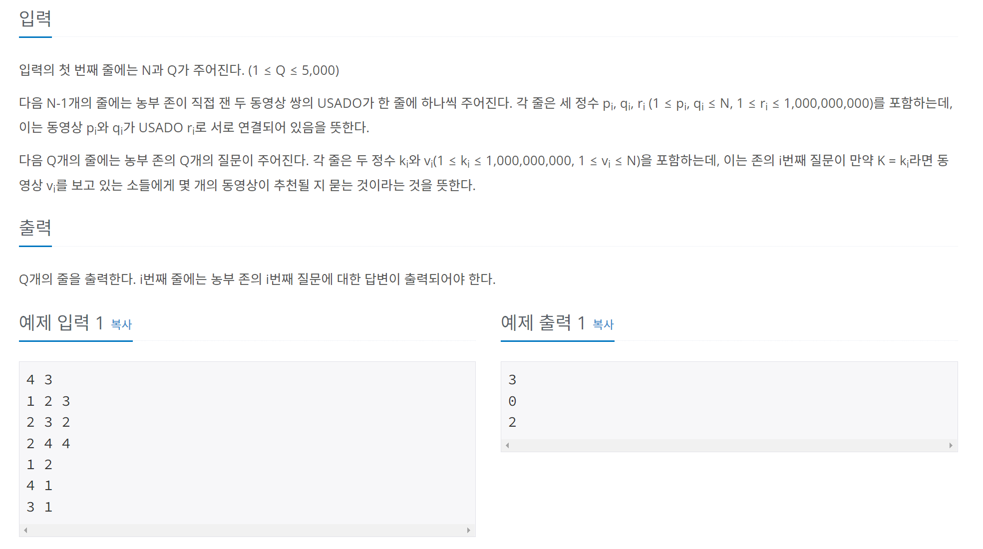 15591번: MooTube (Silver)