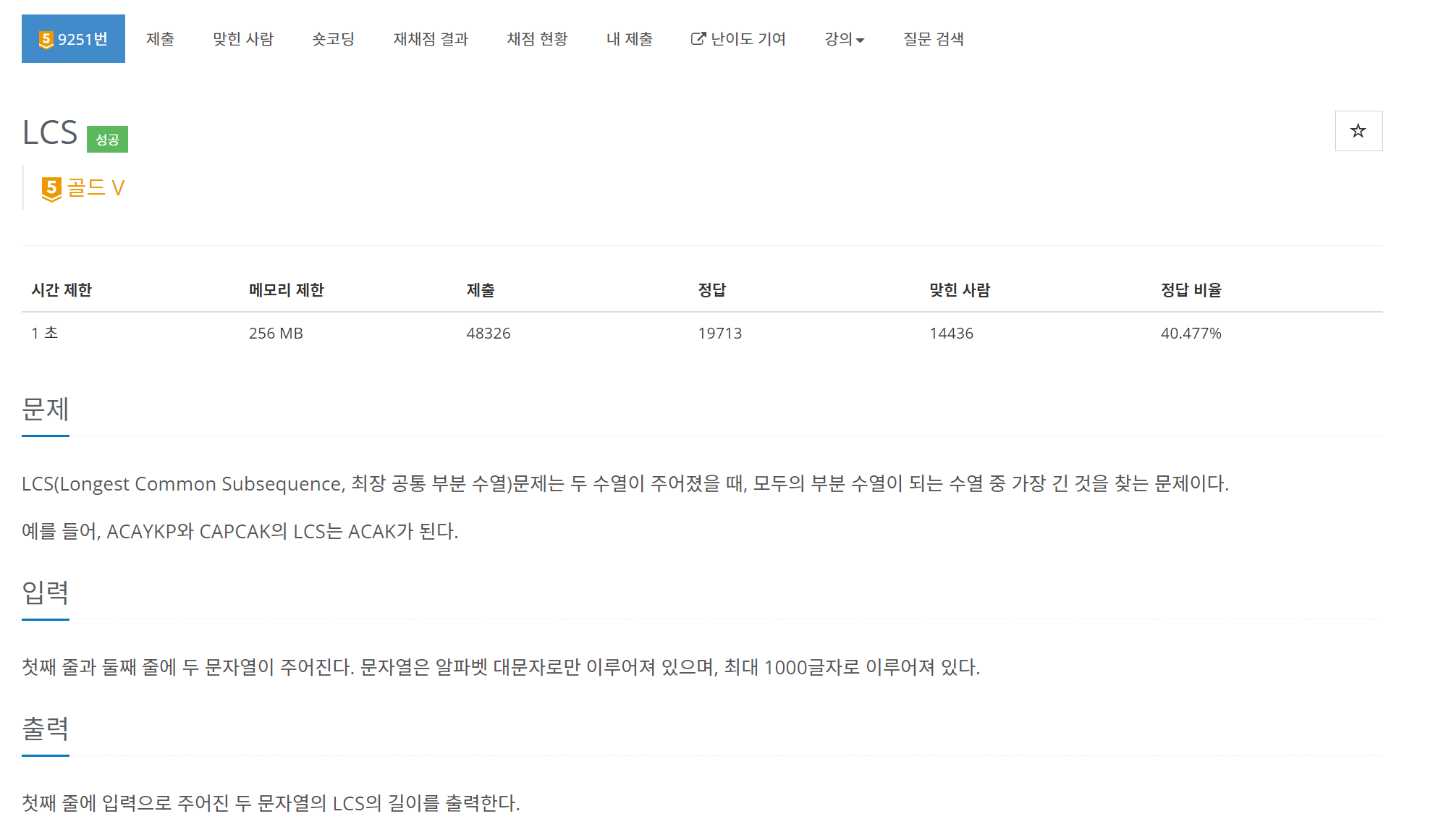 출처 : https://www.acmicpc.net/problem/9251