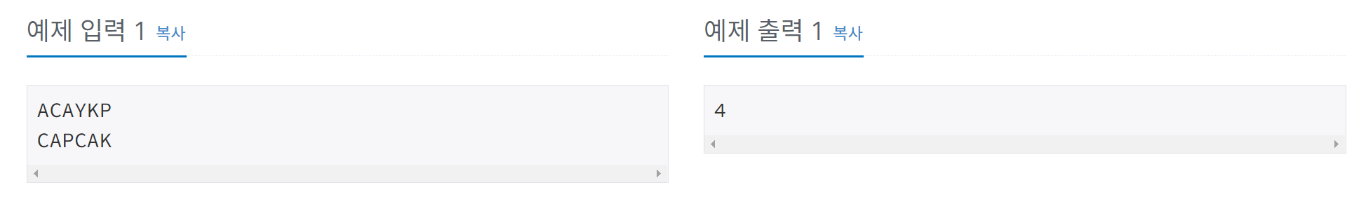 완전 탐색으로 문자열 1과 문자열 2를 비교하는 방법을 생각했었는데, 카테고리가 dp인 만큼 시간 초과가 났습니다.